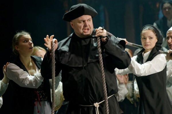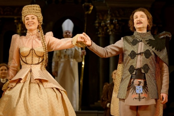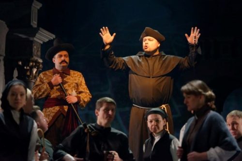 dirigentas Jonas Janulevičius, režisierius ir libreto redakcijos autorius Kęstutis Jakštas, scenografija ir vaizdo projekcijos Gintaro Makarevičiaus ir Dainiaus Liškevičiaus, kostiumai ir grimas Dano Zinkevičiaus ir Kristinos Valančiūtės, šviesų dailininkas Audrius Jankauskas. Išvardinau visus, nes tokios bendrystės, sumanymo ir išpildymo vienovės, aukšto profesionalumo retai begalima išvysti. Džiaugiuosi, kad drąsiai ir kūrybingai sutrumpintas ištęstas B. Sruogos libretas, išryškintos svarbiausios linijos, sankirtos ir konfliktai. Jaunųjų meilės linija tampa vyraujanti, o didikų šeimų nesutarimai dėl įtakos ir tikybos pasiekia dramatiškos kulminacijos spektaklio finale. Daugybė žaismingų, netgi komiškų scenų iš to meto Vilniaus buities, ryškios masinės scenos, scenografija, akcentuojanti baroko linijas, puikūs solistų darbai palieka neužmirštamą įspūdį. J. Karnavičius meistriškai savo muzikoje panaudojo liaudies dainų, sutartinių, humoristinių užstalės dainuškų motyvus, vėlesni epigonai be skrupulų kompozitoriaus atradimus naudojo savo opusuose.