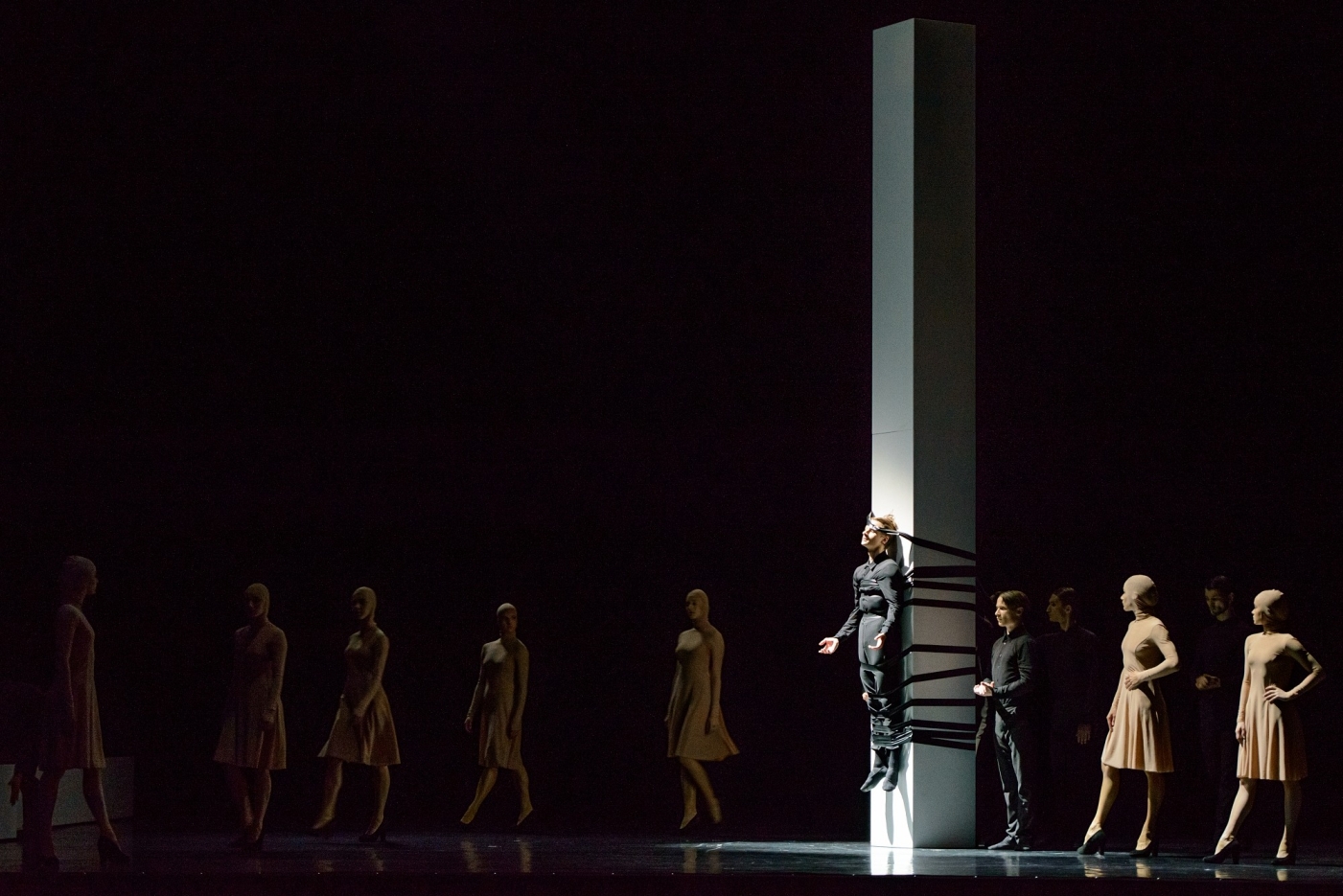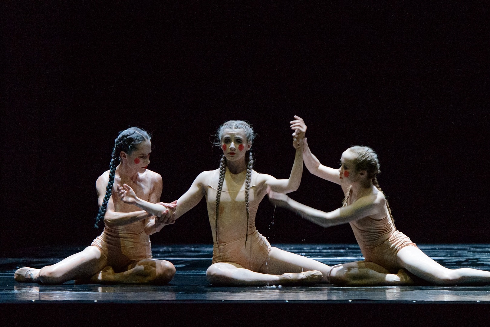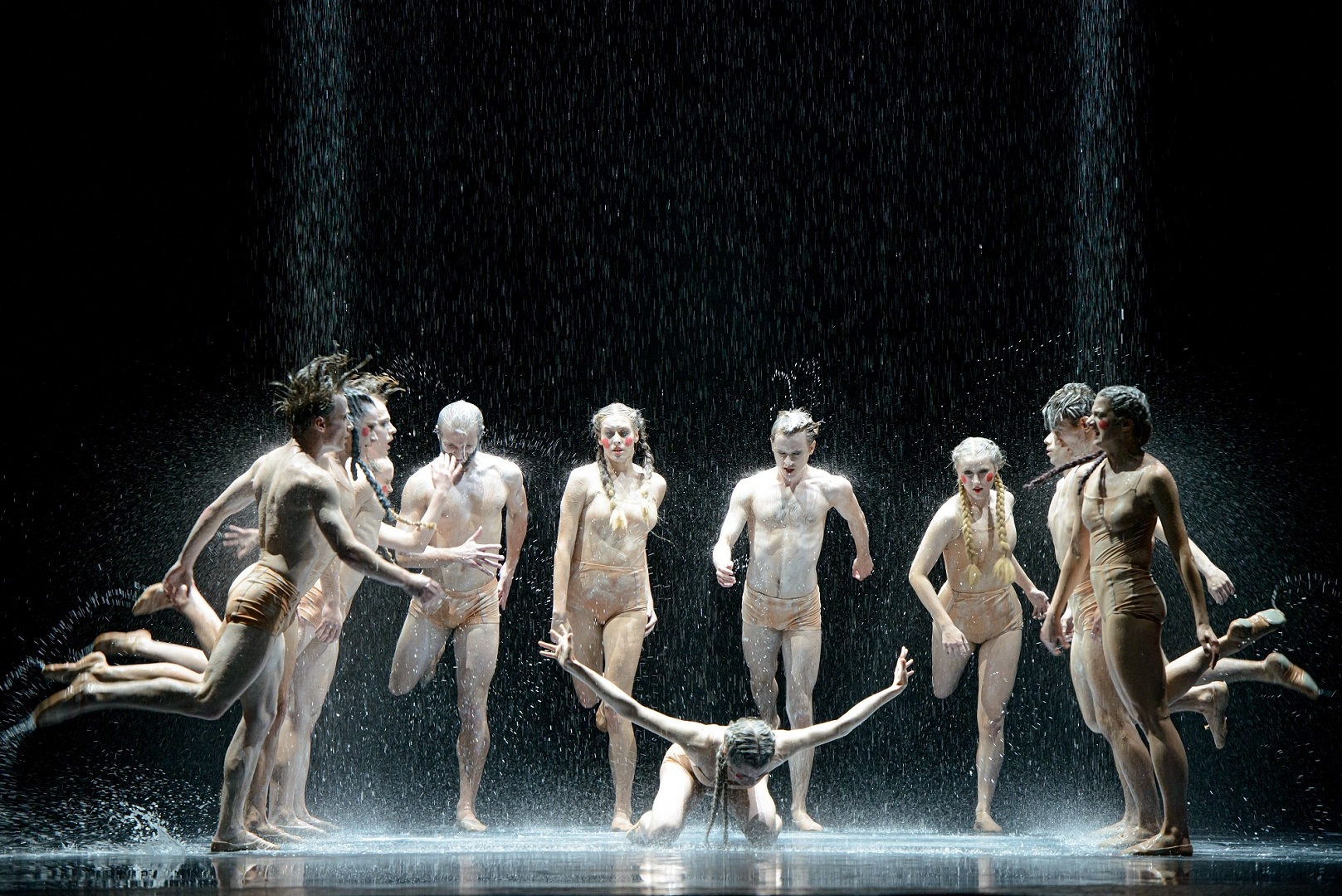 Apeigų metu nekalta mergina šokdinama iki mirties – ji paaukojama pagoniškai vaisingumo dievybei ir taip užtikrinamas Žemės derlingumas. Išlaikomos net kai kurios ikonografinės pirmojo pastatymo detalės: merginų plaukai supinti į kasas, nuskaistinti jų skruostai, o vyrų veidus puošia barzdos. Antra vertus, ieškodamas savo balso šioje šimtmečio pastatymų sagoje, mąsčiau apie simbolius, kurie naujai įkūnytų kūrinio idėją ir sykiu būtų archajiški, kaip ir vaizduojamos apeigos. Klausydamasis pirmą baleto dalį užbaigiančio „Žemės šokio“, supratau, kad man norisi kažko sunkaus, krintančio iš dangaus. Pabandėme eksperimentuoti su vandeniu ir tapo akivaizdu, kad būtent jis suteikia prasmę šioms pavasarinio apsivalymo apeigoms, žemės pašventinimui, paruošiančiam dirvą naujai gyvybei. Tiesa, vienintelis skirtumas nuo originalaus libreto tas, kad Išrinktoji Auka scenoje pasirodo nuo pat spektaklio pradžios, o ne pačioje pabaigoje. Taip galime atidžiau stebėti jos charakterio raidą, jos patirtį: kaip ji atskiriama nuo bendruomenės, negailestingai talžoma, iš jos piktai tyčiojamasi. Bet sykiu pabrėžiama, kad tai jos pačios pasirinkimas, nes ji tai suvokia kaip visos bendruomenės išganymą. Tas dvilypis jausmas – baimė prarasti save ir kartu išdidumas, galų gale užvaldantis bendram labui pasišventusią auką. Tai taip pat yra galia, kylanti iš susitaikymo.